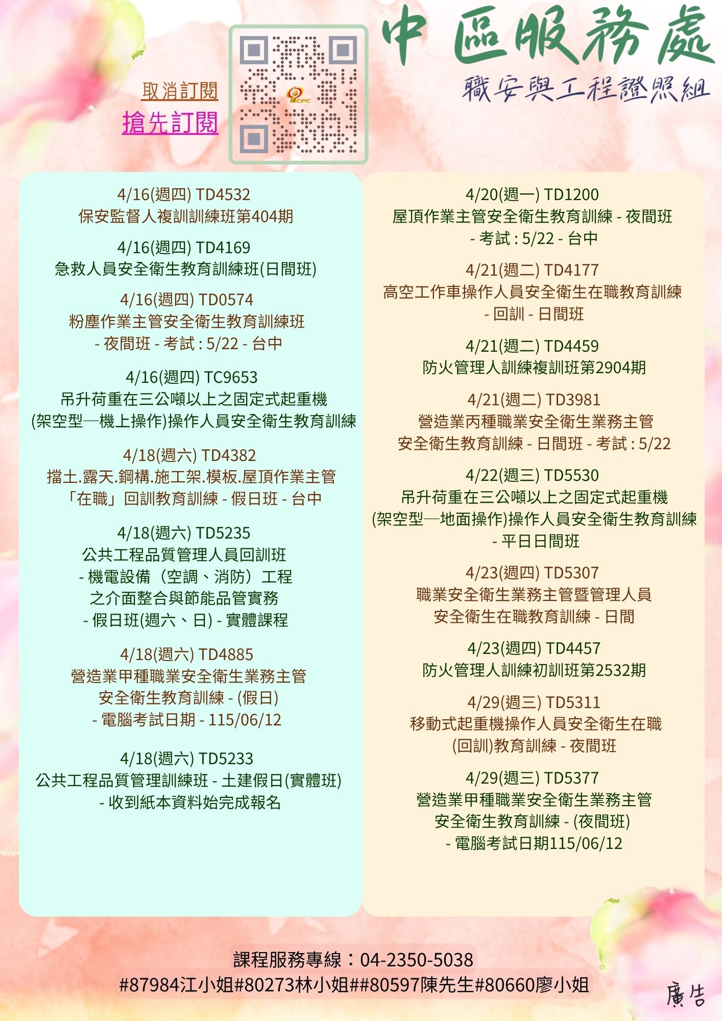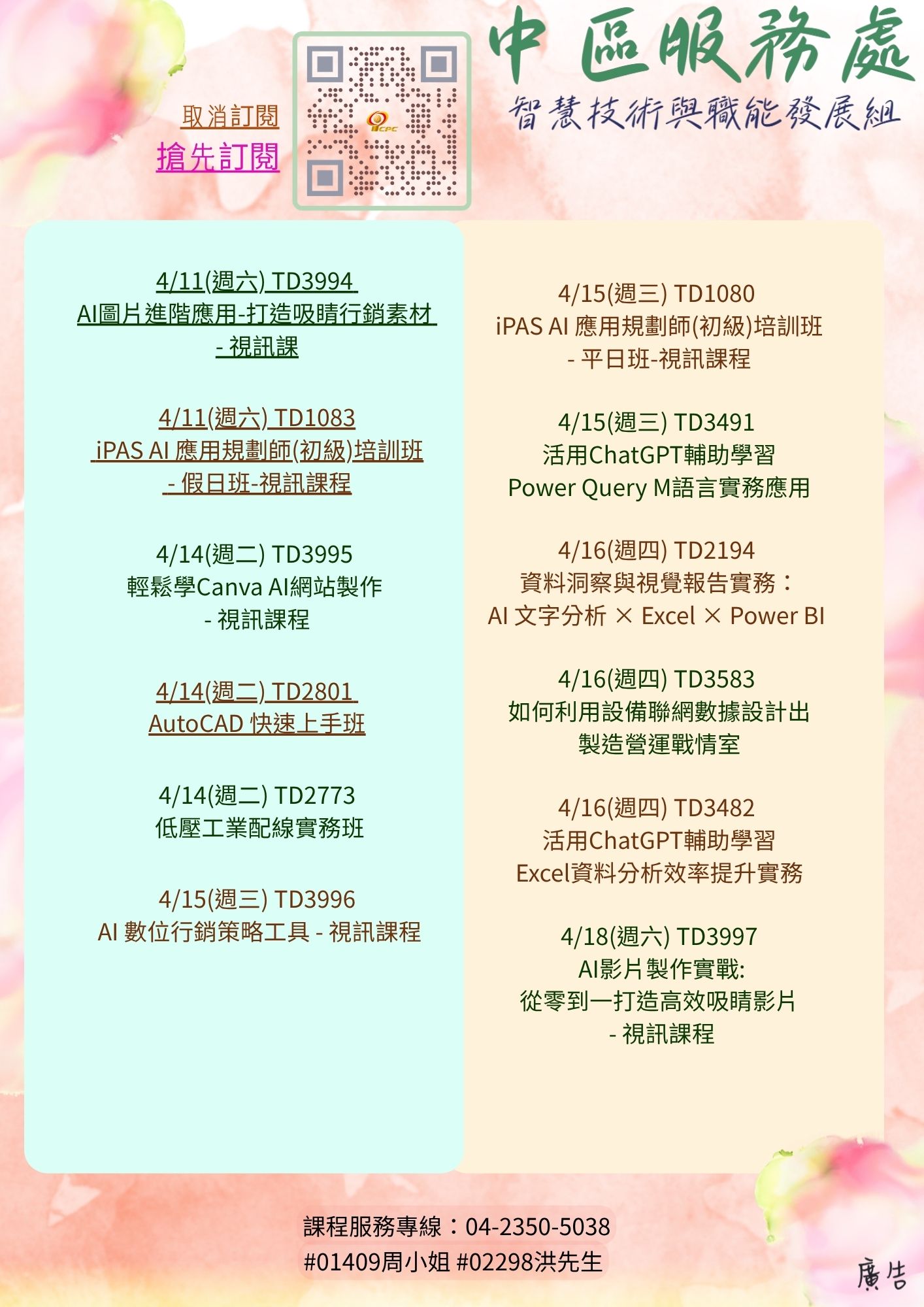 中國生產力中心中區服務處115年4月份學習課程電子報
